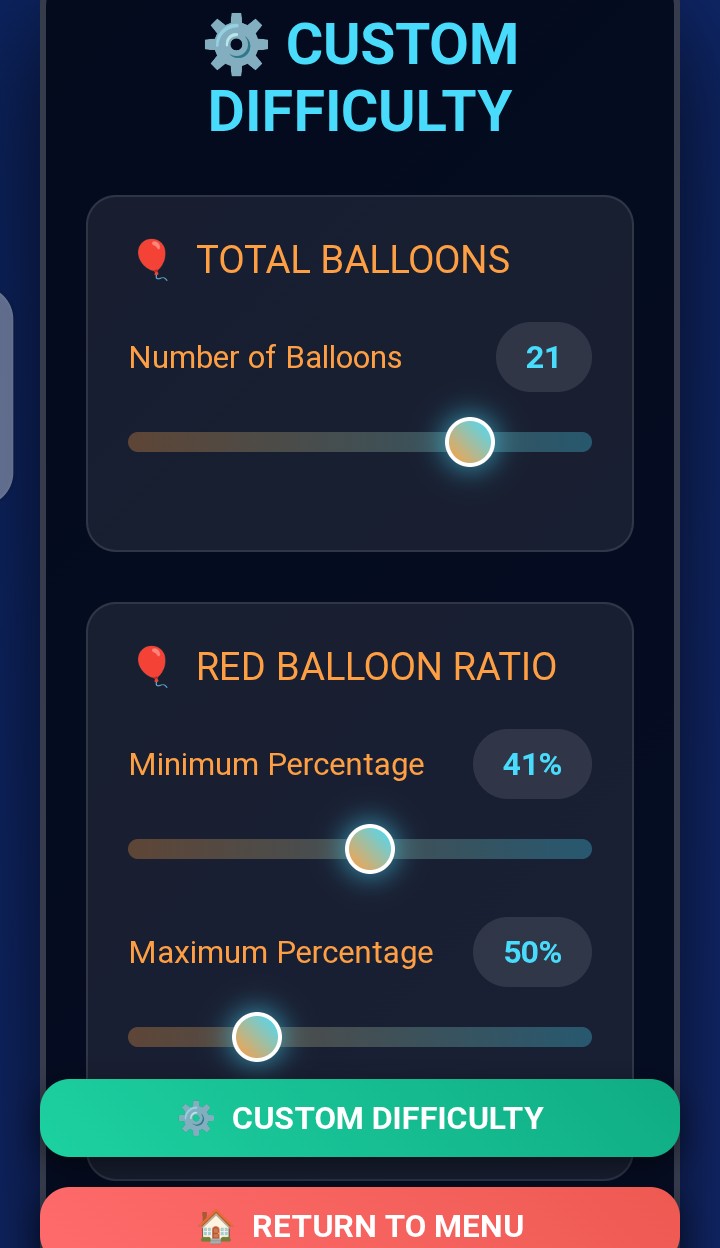 โ Miss a red balloon: SCORE RESETS TO 0!